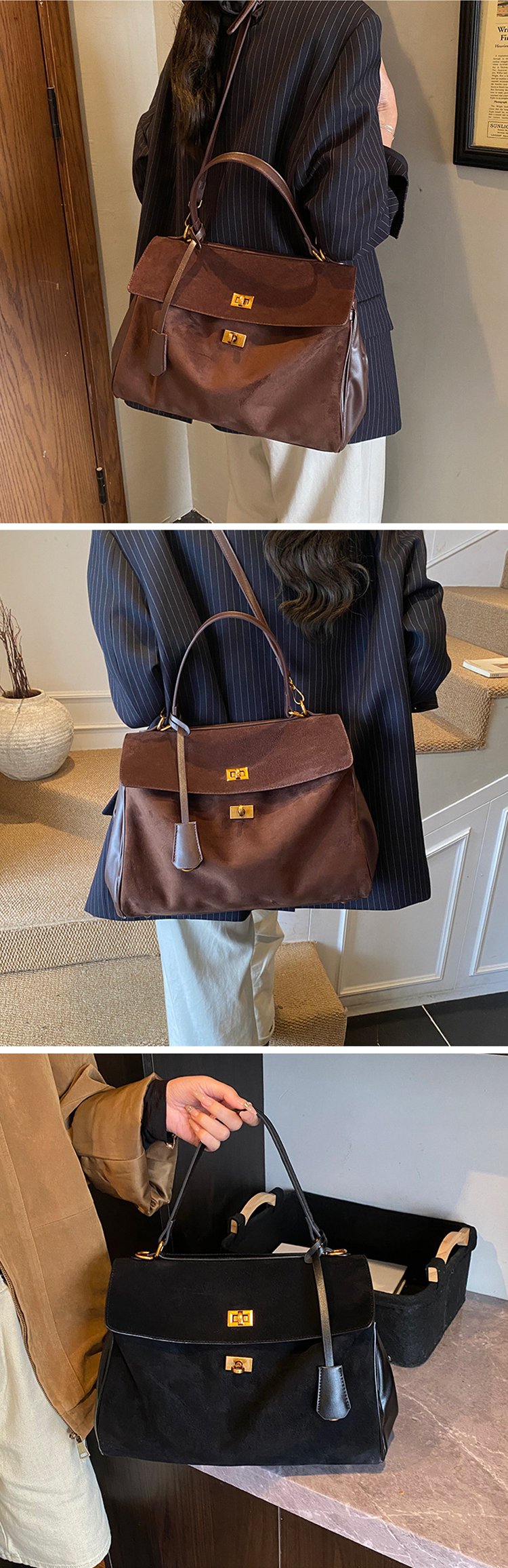 レトロスエード大容量ショルダーバッグ