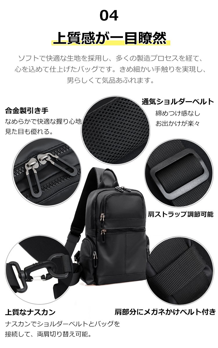 ● オックスフォード布を使用した耐久性抜群のボディバッグで、アウトドアや旅行でも安心して長くご愛用いただけます。